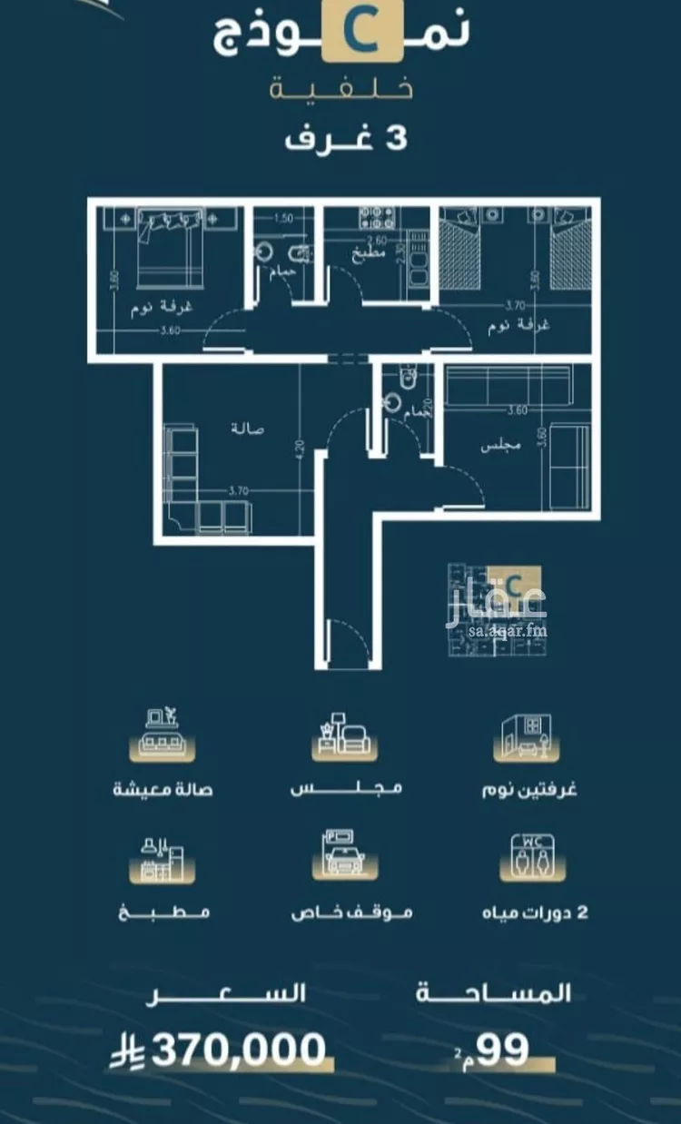 ▫️شقق 3 غرف بمساحة 101م خلفية :